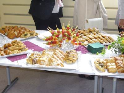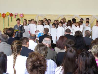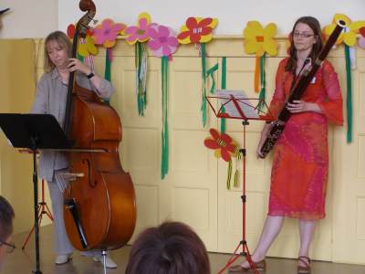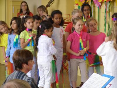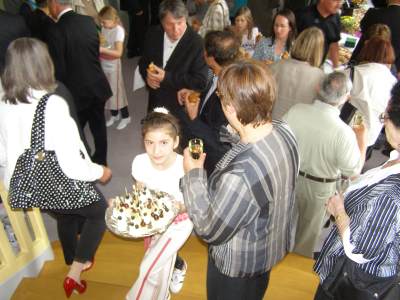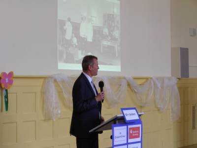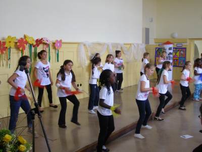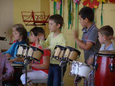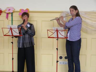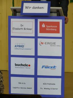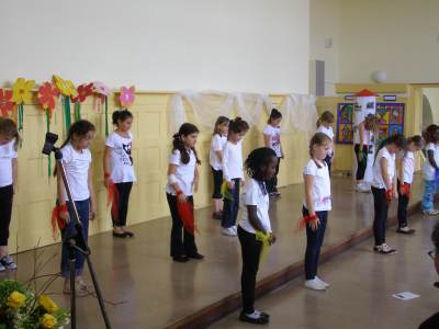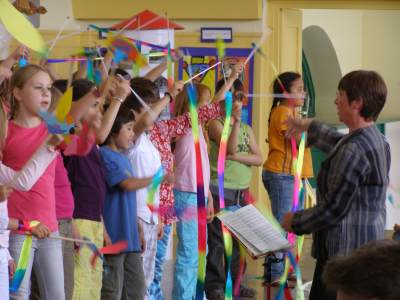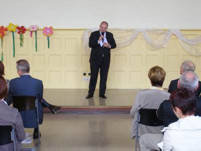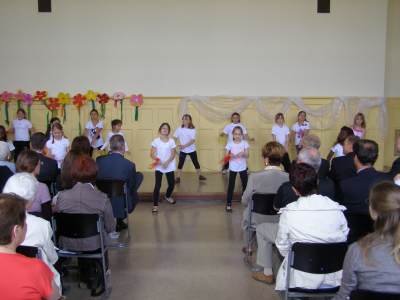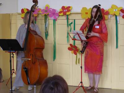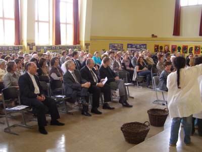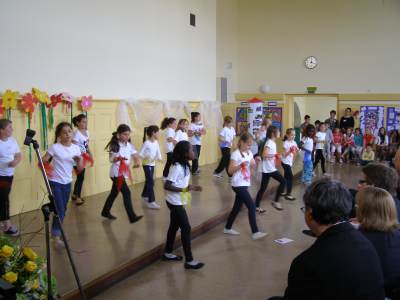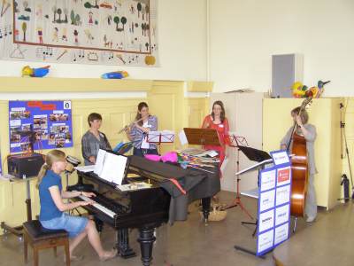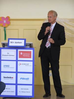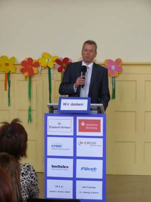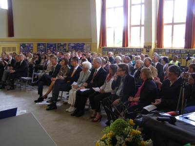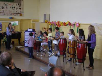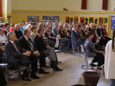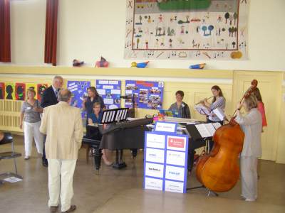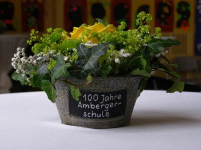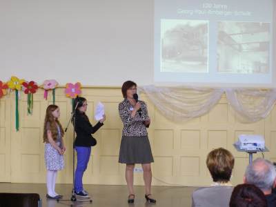 Grußwort von Dr. Ulrich Maly, Oberbürgermeister der Stadt Nürnberg und ehemaliger Grundschüler an der Ambergerschule Rundgang durch Schweinau AG Percussion, Leitung: Susanne Rosiwal-Faigle Unsere Sponsoren (ohne die der Festakt nicht so gut hätte gelingen können): Grußwort von Dr. Klemens Gsell, Schulbürgermeister der Stadt Nürnberg In my head (Jason Derulo) AG Jazzdance, Leitung: Anne Brauers Grußwort von Dirk Wessel, Dekan Grußwort von Wolfram Kriegelstein, Schulamtsdirektor Sonate III (Preludio, Allemanda): Arcangelo Corelli (1658-1713) Lehrerensemble der Ambergerschule Klavier: Anne Brauers, Kontrabass: Regina Diedring, Blockflöte: Barbara Häublein, Fagott: Hedwig Kreller, Querflöte: Susanne Rosiwal-Faigle Grußwort von Paula Karlovic und Karin Mardetko, Elternbeirat der Ambergerschule Momentaufnahmen aus der Geschichte der Ambergerschule Claudia Hirsch, Schulleiterin sowie 2 Schülerinnen aus der Klasse 4c mit selbst gestalteten "Elfchen" Sonate III (Corrente, Gavotta): Arcangelo Corelli (1658-1713) Lehrerensemble der Ambergerschule Klavier: Anne Brauers, Kontrabass: Regina Diedring, Blockflöte: Barbara Häublein, Fagott: Hedwig Kreller, Querflöte: Susanne Rosiwal-Faigle Im Anschluss an Reden und Vorführungen gab es einen kleinen Imbiss, der von unserer Cateringmannschaft unter Leitung unserer WTG-Lehrerin hervorragend vorbereitet und serviert wurde. Während des Imbisses unterhielt das Lehrerensemble mit Jazzstandards. Wir danken auch unseren weiteren Sponsoren: Bäckerei Steingruber (Schweinau), Firma Lehrieder, Villa Leon und dem Roten Kreuz für die Sachspenden zum Festakt! Fotos © 2011 D. Härtl
