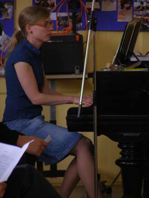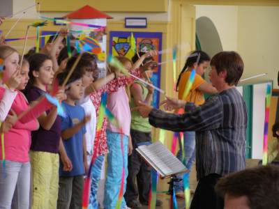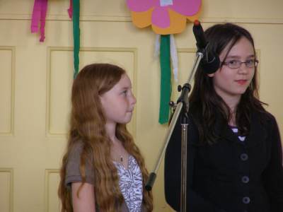 Programm: Die Frostianer und der Frühlingsbote (von Uli Führe) Schulchor der Ambergerschule, Leitung: Barbara Häublein Klavier: Anne Brauers, Blockflöte und Percussion: Hedwig Kreller, Kontrabass: Regina Diedring Begrüßung durch Schulleiterin Frau Claudia Hirsch
