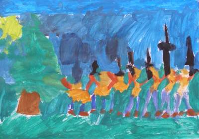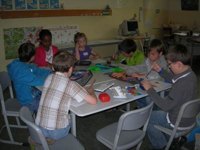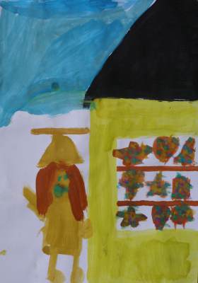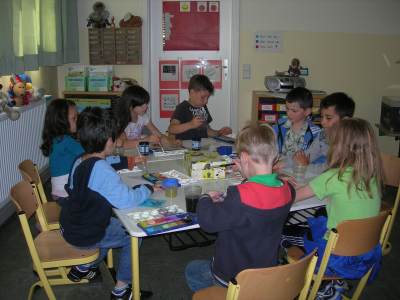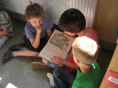 | Das Büchlein "Nürnberger Lebkuchen", das wir uns als Bilderbuchkino genau angesehen haben, ist schon 70 Jahre alt. Zu diesem Buch hat jedes Kind ein Bild gemalt. Weitere Bilder zu den Büchern: Der Wandersmann Jörg geht zu den Soldaten Das Haus der Lebkuchenbäcker Danach haben wir uns viele alte Bilderbücher angesehen und Leseproben vorgelesen. Fotos © 2011 F. Windt / D. Härtl