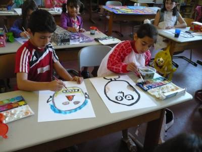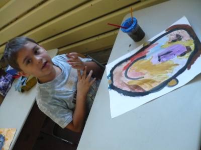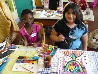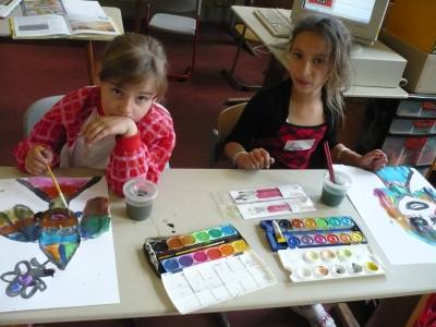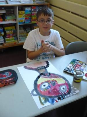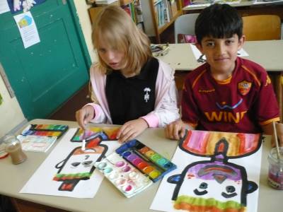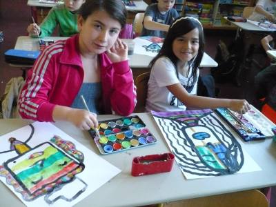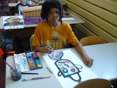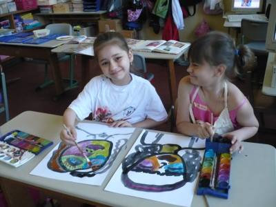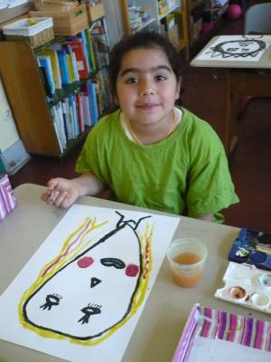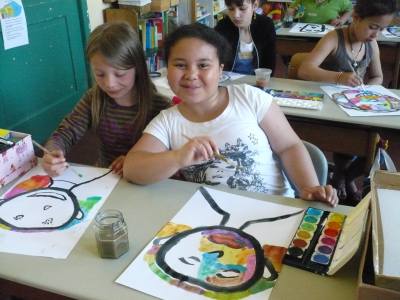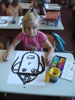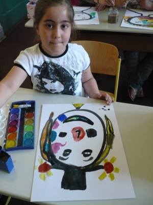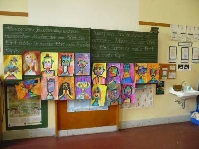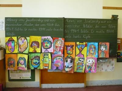Während die schwarzen Linien trockneten suchten wir im Internet und in Kunstbüchern bunte Köpfe von Alexej von Jawlensky. Wir fanden heraus, dass er sich vor 100 Jahren selbst bunt malte. Fotos © 2011 R. Diedring |