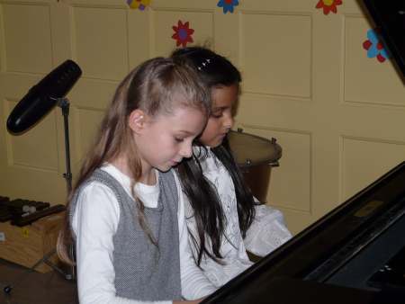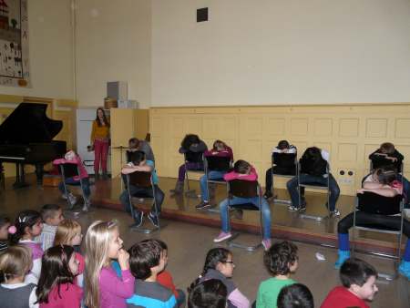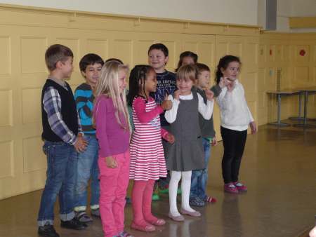 Die Klasse 1a hat ein Lied ohne Worte eingeübt, das sie uns vorgeführt hat. Als Nächstes hörten wir ein ganz besonderes Instrument: Den Flügel. Zwei Mädchen aus der Klasse 2b spielten darauf zusammen ein Stück vor. Toll, dass schon zwei 1. Klassen bei der ersten Monatsfeier im neuen Schuljahr mitmachen! Die Klasse 1c sang für uns das Stück "Hurra, ich bin ein Schulkind" Zum Abschluss sahen wir einen Tanz der Klasse 4d. Sie hatte ihn lange eingeübt.