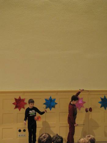 2 Jungs haben im Hort ein neues Hobby gefunden und fleißig trainiert.