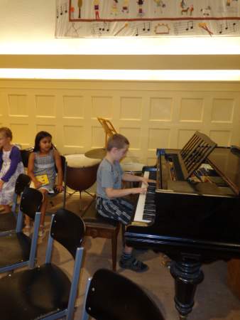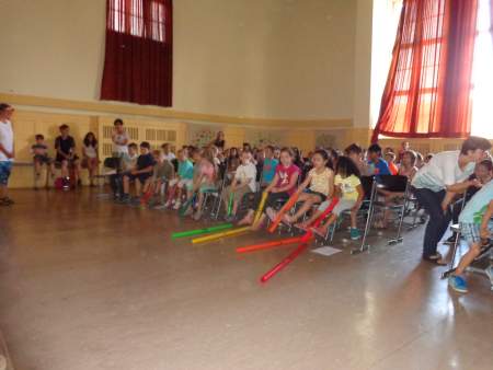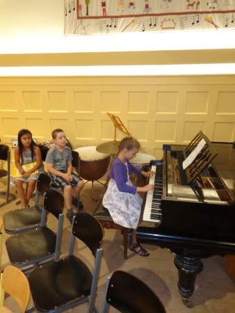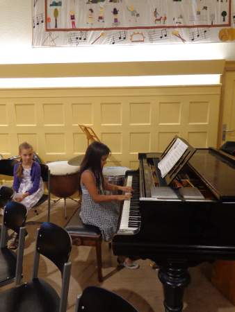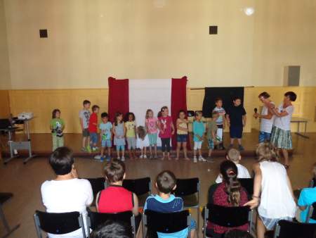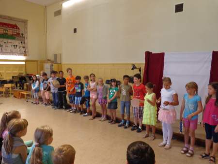 Wie immer führten 2 Kinder, diesmal wieder aus der Klasse 3a, durch das Programm. Zu Beginn sahen wir ein Schattentheater der Klasse 1c, betreut von Frau Marquart, da ihre Klassenlehrerin leider heute erkrankt war (gute Besserung!). Die Klasse 3c von Frau Jagusch führte einen Sprechvers vor. Anschließend konnten alle Kinder beim "Cup-Song" der Klasse 2b von Herrn Härtl mitklatschen. 3 Kinder aus der Klasse 2b spielten uns danach kleine Musikstücke auf dem Flügel vor. Den Abschluss bildete schwungvoll die Klasse 3a von Frau Duringer mit ihrem "Dracula-Rock". Fotos © 2014 D. Härtl |