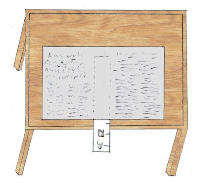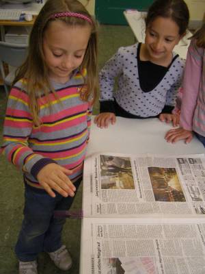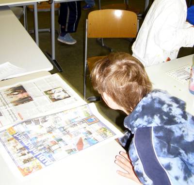 das Zeitungsblatt schön flach auf dem Tisch und dem Lineal