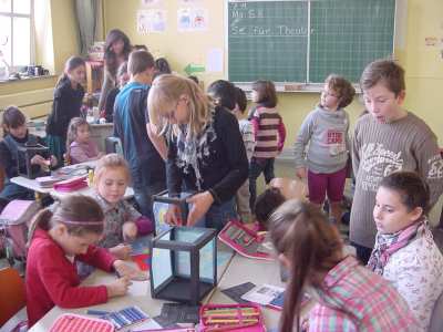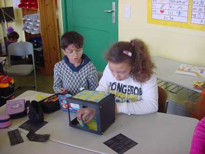 Am 7. November 2011 bastelten die Kinder der Klasse 1d mit großer Hilfe ihrer Paten aus der 4b die Laternen für den Laternenumzug am 10. November. Schon vor den Herbstferien hatten wir die Seitenwände mit Sonne, Mond und Sternen bemalt, nun wurden die Rahmen zusammengesteckt und die Seitenwände hineingeklebt. Ohne die tatkräftige Unterstützung der Paten hätten wir das nicht geschafft.