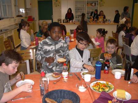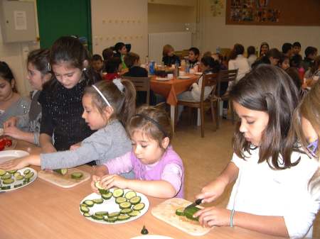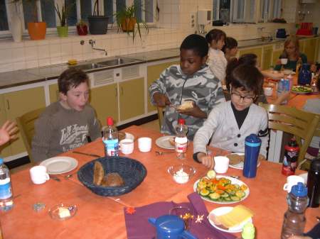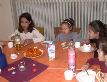 Patenkinder schnitten noch Gemüse und dann ließen es sich alle gut schmecken.