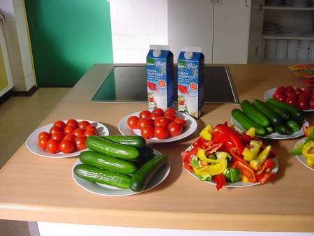 dieses Mal Cornflakes mit Bio-Vollmilch. Auch die Gurken, Tomaten und Paprika
