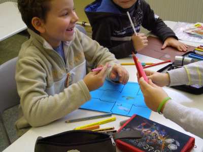 Unser Lehrer hat dann in jedem Päckchen eine kleine