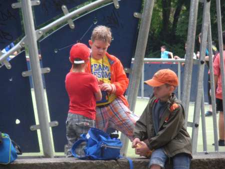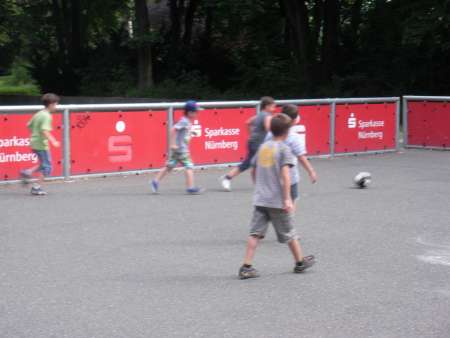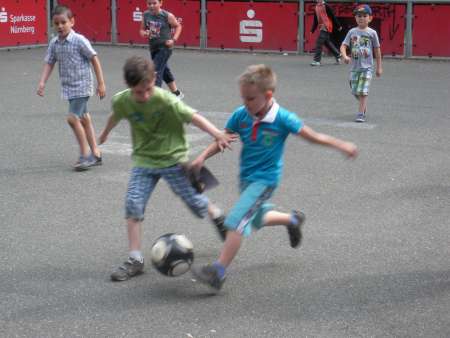 Gemeinsam fuhren wir zu einem Spielplatz auf dem Gelände des Nürnberger Luitpoldhains. Dort ist für alle etwas geboten: 2 kleine Fußballfelder, 1 Basketballkorb, viele Spielgeräte und auch gemütliche Wiesen zum Ausruhen. Die "Kleinen" (die ja in der Zwischenzeit gar nicht mehr so klein sind...) freuten sich, wieder einmal mit ihren großen Patenkindern zusammen zu sein, die sie schon vermisst hatten. Und für die "Großen" war es schon ein wenig Abschied von ihrer lieb gewordenen "alten" Grundschule. Sie werden ja im nächsten Jahr an weiterführende Schulen wechseln. Wir "Erstklässler" bedanken uns jedenfalls sehr herzlich bei den "Großen", dass ihr uns so aufmerksam und hilfsbereit bei unserem Schulstart im September begleitet und uns ein wenig die Angst vor dem Neuen, das alles mit dem 1. Schultag auf uns eingestürzt ist, genommen habt. Es war wirklich eine sehr schöne Zeit mit euch zusammen. Wir wünschen euch viel Erfolg an eurer neuen Schule und viele neue, interessante Begegnungen!