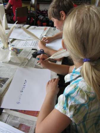 Sie erfuhren was die Menschen damals für Kleidung trugen, wie sie ihre Häuser bauten, wie sie damals schrieben und wie Verbrecher damals bestraft wurden. Außerdem durften die Schüler an einem mittelalterlichen Tanz teilnehmen. Natürlich wurde auch Nürnberg zur Zeit des Mittelalters in den Blick genommen und die Kinder verglichen Bilder von damals mit Bildern von heute. Insgesamt war der Vormittag für die Kinder interessant, lehrreich und sie hatten jede Menge Spaß. Fotos © 2013 J. Jagusch |