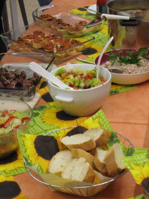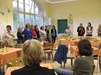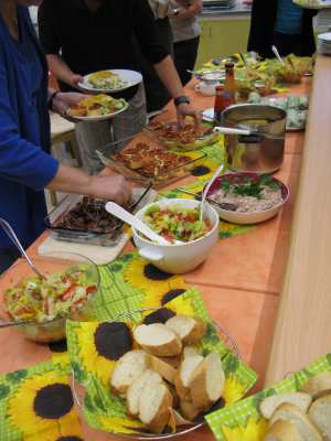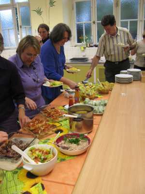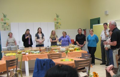 Am 22. Juni 2010 war die offizielle Einweihung. Lehrkräfte und Sponsoren gaben beim Herrichten der Speisen und dem Verzehr der leckeren Ergebnisse ihr Bestes: |
