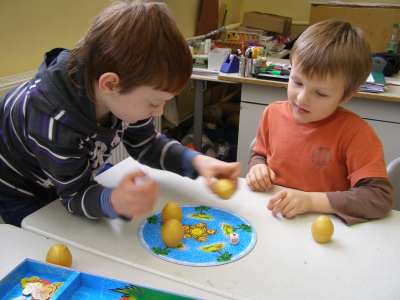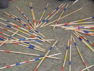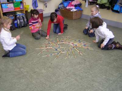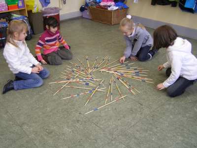 Reihum muss jedes Kind versuchen, 1 Stäbchen zu nehmen, ohne dass ein anderes Stäbchen wackelt.