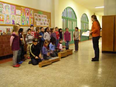 Adventssingen statt. Heuer eröffnete Frau Häublein mit dem Schulchor den Liederreigen am 29. November 2010. Das Singen zum 2. Advent gestaltete Frau Rosiwal-Faigle mit ihrer Klasse am 6.12.2010 (Nikolaustag). Am 3. Advent (13.12.2010) erfreute uns Regina Diedring mit ihrer Klasse. Das letzte Adventssingen fand am Montag, den 20. Dezember (4. Advent) statt. Frau Kreller und ihre Klasse erfreuten uns mit adventlichen Weisen. |