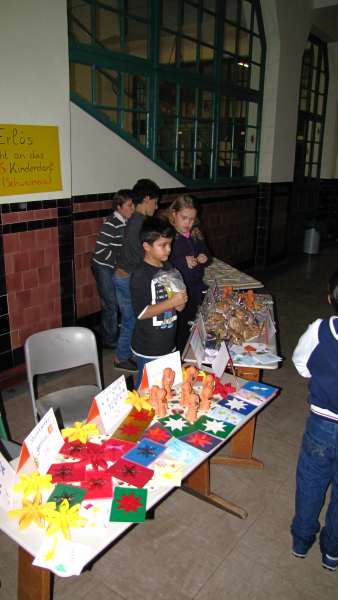 Vor und nach dem Konzert verkauften Kinder selbst hergestellten Weihnachtsschmuck