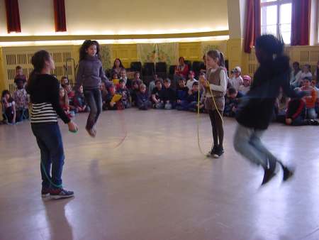 Mit viel Bewegung und Power startete die Jazzdance Gruppe von Frau Brauers mit einem Michael Jackson Tanz. Die Schüler der 4c hatten sich im Sportunterricht in kleinen Gruppen ausgedacht, auf wie viele verschiedene Arten man denn Seilspringen könnte. Ihre beschwingten Choreografien stellten sie nun zu schottischer Musik vor. Der Winter ist vorbei, der Frühling erwacht. Mit ihm beenden auch die Siebenschläfer ihren Winterschlaf. Die Klasse 1c von Frau Brauers erfreute uns mit Auszügen aus ihrem "Siebenschläfer Musical". Um den Frühling ging es auch in dem nächsten Lied. Die Klasse 2a von Frau Bergthold weckte mit ihrem freudigen Singen in uns allen die Lust auf sonnige Ferien. Bei "Ich lieb den Frühling" stimmten schon die ersten Zuhörer begeistert mit ein. Höhepunkt der Monatsfeier war aber der englische Rap "Hey Joe" der Klasse 4a. Dafür hatten sie sich extra in Schale geworfen und sahen echt COOL aus. Animiert von der Klassenlehrerin Frau Langlotz bewegte sich schließlich das ganze Publikum zu dem Rap. Sind sie nicht unwiderstehlich? Mit Musik im Ohr und Rhythmus im Körper gingen die Klassen fröhlich auseinander. Die Ferien konnten kommen. Fotos © 2012 S. Rosiwal-Faigle |