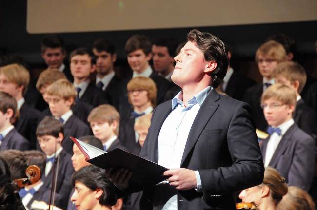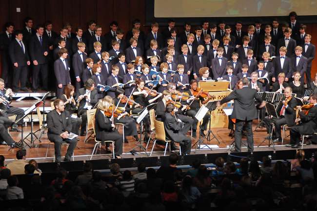 In einer speziellen Kinderfassung erfuhren die großen und kleinen Zuhörer nicht nur etwas über den Inhalt und die Musik des Weihnachtsoratoriums, sondern auch viel über die Eigenarten und die Spielweise der einzelnen Instrumente des Orchesters. ![]() Der eigentliche Star des Konzerts war aber der Knabenchor, der alle Schulchorsänger mächtig beeindruckte.