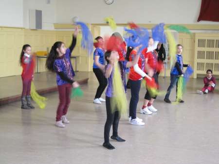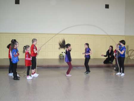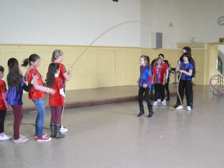 Am letzten Schultag vor den Osterferien fand wieder eine Monatsfeier statt an der auch viele Eltern teilnahmen. Die Zirkusgruppe zeigte zu fetziger Musik viele Kunststücke mit dem Seil, den Reifen und Jongliertüchern. Alle Zuschauer sahen gebannt zu.