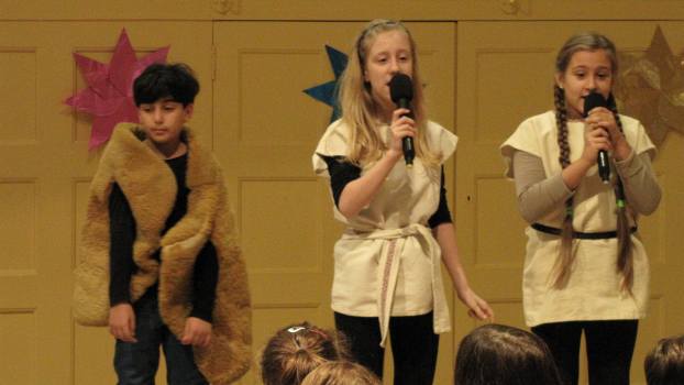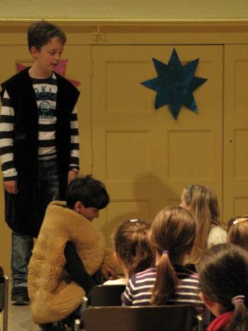 Nach dem 3. Adventssonntag sang die Klasse 4a mit Frau Duringer. ![]() Am letzten Montag vor Weihnachten gab es eine Überraschung. In der Aula wurde für alle Klassen ein kleines Musical aufgeführt: |