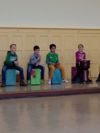 ![]() Zu Beginn sangen wir mit allen das Monatslied "Trat ich heute vor die Türe" ![]() Zu dem Monatslied hatten wir von der Klasse 3d einen Tanz eingeübt. Passend zu Fasching wurde mit bunten Bändern getanzt. ![]() Bei der Trommelgruppe ging es diesmal um ein ganz kleines Instrument: Die Klangstäbe Die echten Musiker nennen sie Claves. Das Stück der Percussion-AG hieß: "Ich bin ein Clave" ![]() Auf der Mauer, auf der Lauer und Eine Insel mit zwei Bergen ![]() Seid ihr schon einmal im Zirkus gewesen? Sicher habt ihr da auch die tollen Turner bewundert. Im Sportunterricht haben die Schüler der Klasse 3c einige Akrobatiknummern eingeübt. ![]() Zum Schluss sangen die 4c und die Chorkinder der 3. und 4. Klassen den Kanon "Trommelschlag"