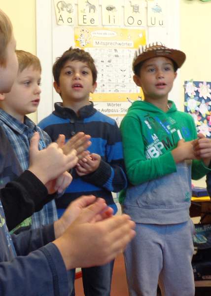 Um 10.10 Uhr sollten 60.000 Kinder in ganz Deutschland an vielen Schulen, die Mitglied bei der "Musikalischen Grundschule" sind, gleichzeitig das Lied "Ich mach Musik" singen. An der Ambergerschule wurde dazu das Lied (Playback) über die Schullautsprecheranlage in alle Klassenzimmer übertragen, und die Ambergerkinder sangen live dazu mit. ![]() Sogar in der Turnhalle wurde der Sportunterricht kurz unterbrochen und die Kinder trällerten mit Begeisterung und dazu passenden Bewegungen das zuvor einstudierte Lied mit. ![]() Uns hat die ganze Aktion sehr viel Spaß gemacht und angeregt, im Unterricht noch mehr und den ganzen Tag zu singen! Lied "Ich mach Musik den ganzen Tag" instrumental mit Chor (als mp3 zum Anhören/download) Text und Noten dazu Fotos © 2015 M. Scharpf / D. Härtl |