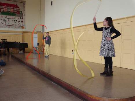 Zu Beginn besuchte uns der Amberger Zirkus. Die Klasse 1a erzählte die Geschichte von den 5 Gespenstern. Zwei Kinder aus der Klasse 4d haben sich diesen Bändertanz selber ausgedacht. Die