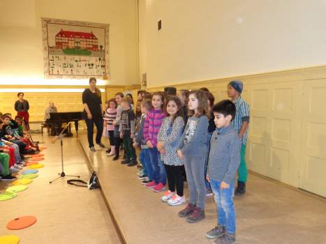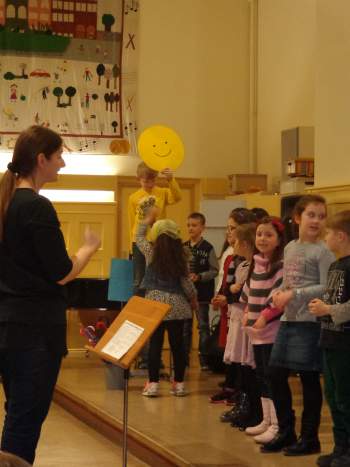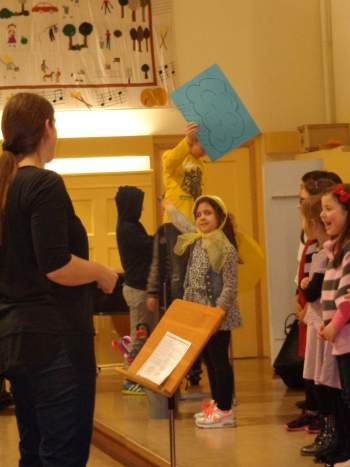 Gemeinsam mit der Musikschule Nürnberg veranstaltet die Amberger Schule jedes Jahr ein Frühlingskonzert, dieses Jahr unter dem Motto: „Alle Wetter“. Neben Bands, Trompeten- und Gesangsdarbietungen von Schülern der Musikschule traten 2 Klassen der Schule und der Chor auf. Der Amberger Schulchor sang von Tante Trude Trippelstein, die schönes Wetter gar nicht mag und von Kindern, die Spaß haben, im Regen herumzulaufen. Das Lied „Es geht ein dunkle Wolk´ herein“ ist ein sehr altes Lied, in dem es nicht nur ums schlechtes Wetter ging, sondern auch um Abschied und den dreißigjährigen Krieg. Begleitet wurden sie von Horst Faigle am Klavier. Die Klasse 2c musizierte den Zauberspruch „Ong dong dreoka“ und sang das Lied vom Nasophon. „Es mag verrückt sein, aber es ist wahr, ich bin einfach glücklich und zwar jeden Tag“, sang die Klasse 4c. Das Lied von Pharrell Williams (Happy) begleiteten sie auch auf Orff- Instrumenten. Am Klavier unterstützte Katharina Malbeck. ![]() |
