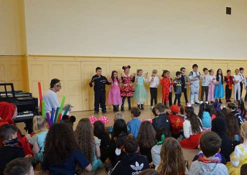 Zu Beginn begrüßte uns die Klasse 4c rhythmisch mit dem Stück "We can do it better" Noch einmal sang der Chor für uns das Lied "Nashorn, Elefant und Krokodil" Das Gedicht "Ein Hase, der gern Bücher las..." mit selbst gemalten Bildern trug die Klasse 1d vor: Und zum Schluss ließ die Klasse 1b die "Tante aus Marokko" kommen: Vielen Dank allen Teilnehmern! Fotos © 2019 dh / im |