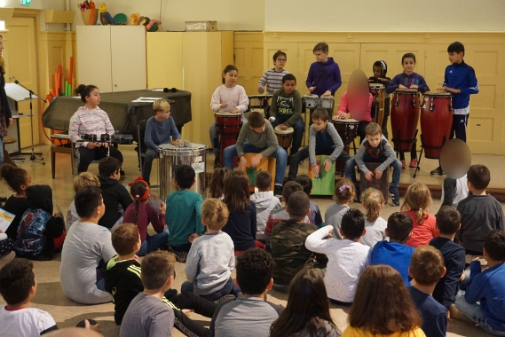 Die Percussiongruppe eröffnete mit dem "Beginners Rock" die Monatsfeier.