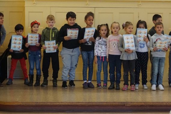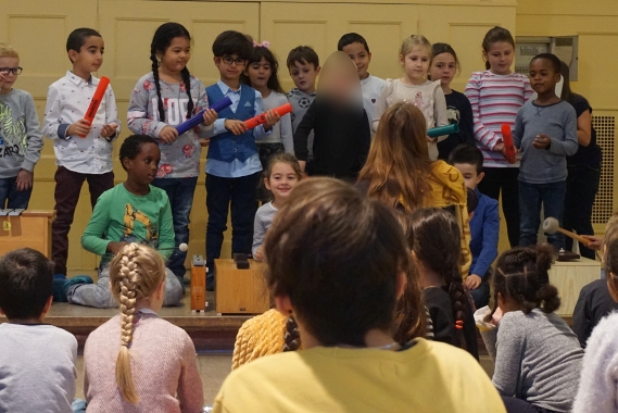 Ein Geburtstagslied trug die Klasse 1c vor: "Es gibt so Tage" Die Klasse 2b präsentierte das Mitmachlied "Drei Chinesen mit dem Kontrabass" Was sie alles schon seit Schulanfang gelernt haben, zeigten die Kinder der Klase 1b mit dem "Piri-Rap" Passend zur Jahreszeit beendete die Klaees 1a die Monatsfeier mit einem Herbstlied Fotos © 2019 dh |