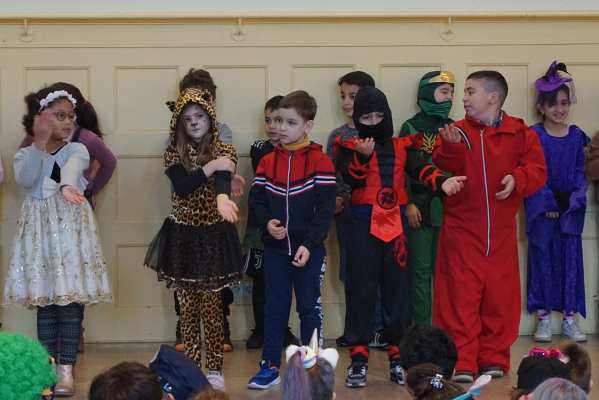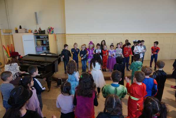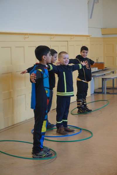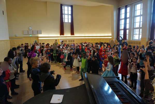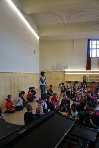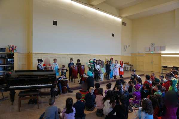 Zu Beginn begrüßte uns die Klasse 2c mit "Trommelklang": Danach durfte man sich beim "Macarena-Tanz" bewegen: Eine "Reifenkür" zeigte die Klasse 2d: Und zum Schluss tanzten wir mit der Klasse 1c zusammen den "Sitz-Boogie" und den "Ententanz" Vielen Dank allen Teilnehmern, die sich diesmal besonders fantasievoll verkleidet hatten! Fotos © 2020 dh |