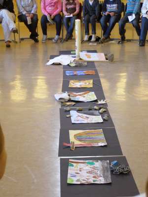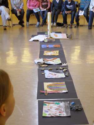 die Schülerinnen und Schüler ihre Bilder vor und erzählten die Geschichten dazu.