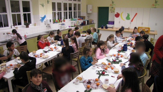 adventlich gedeckten Tischen stärkten wir uns mit einem leckeren Frühstück für